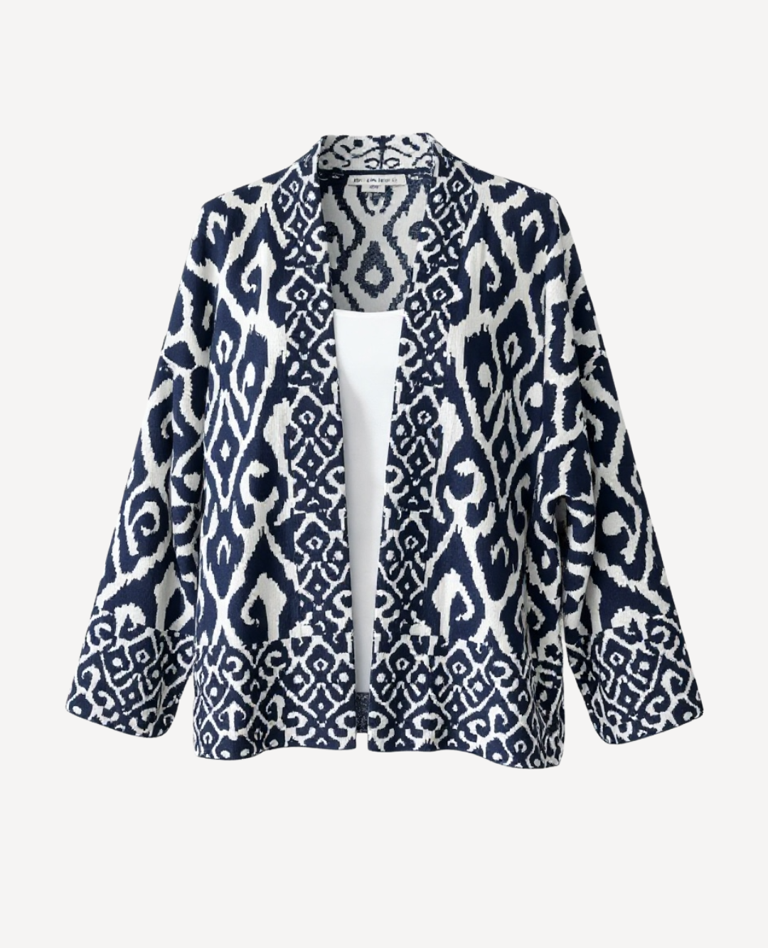 Una pieza sofisticada y artística que roba miradas. Su diseño fluido y ligero en tonos azul y blanco se adorna con elegantes arabescos que evocan estilo mediterráneo y frescura. Perfecta para elevar cualquier look, ya sea sobre un outfit monocromático, un pantalón blanco de lino, o incluso unos jeans clásicos para un toque más casual. Ideal para quienes aman las prendas con personalidad y movimiento. 🌊✨