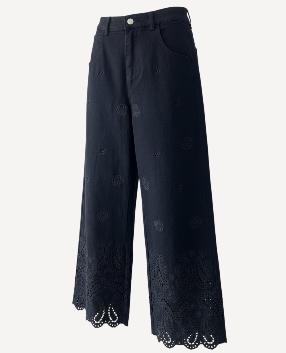 Jean Flores Bordado tipo ojalillo Negro