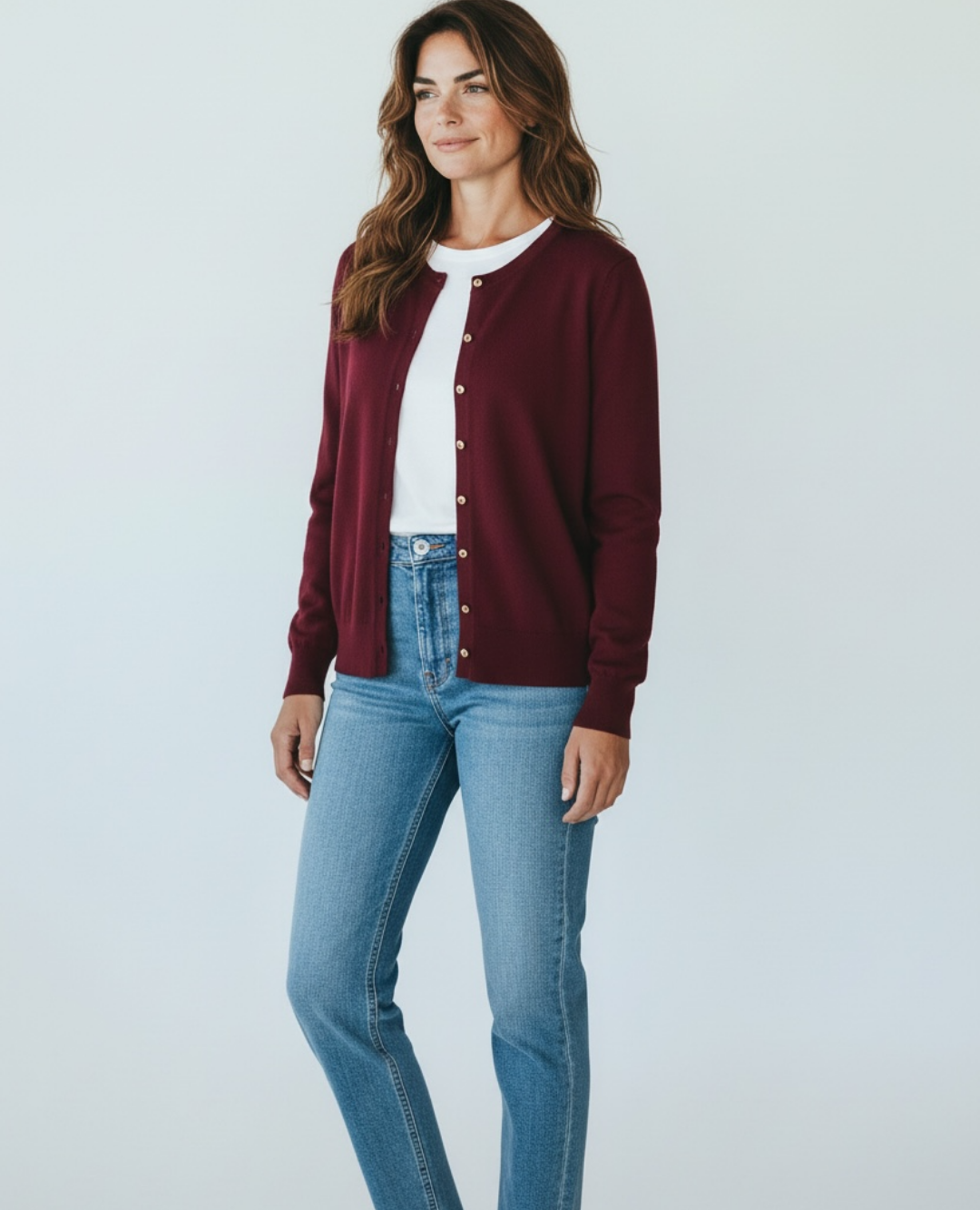 Es una prenda ideal para la temporada: combina increíble con jeans, pantalones en tonos neutros o faldas tejidas. Úsalo para looks casuales o más pulidos; siempre se verá chic y armonioso gracias a su color intenso y su diseño atemporal.