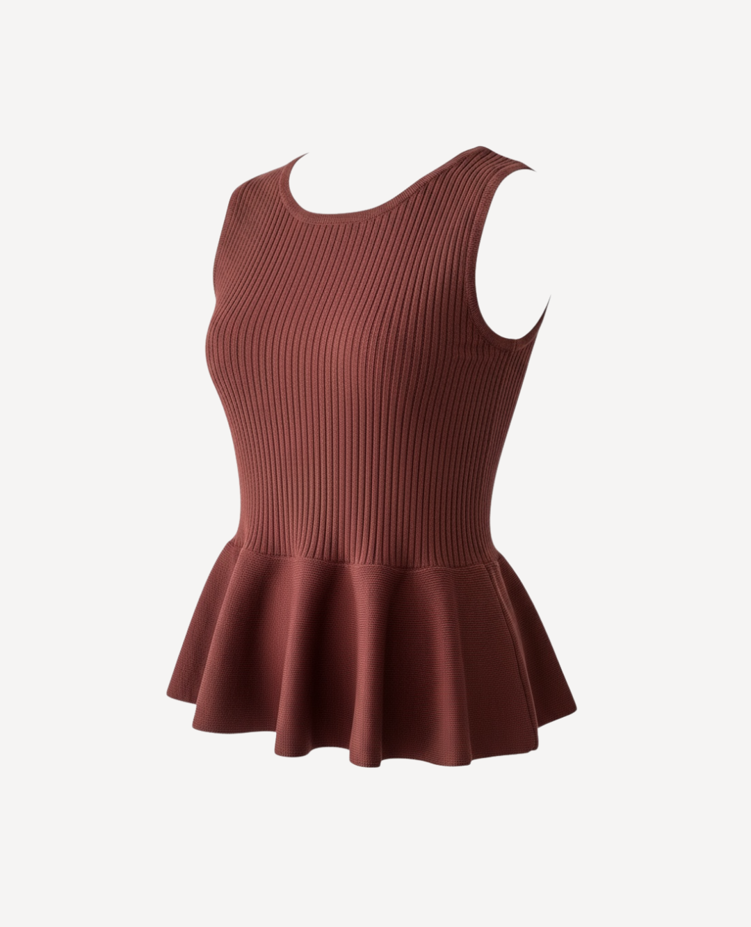 🍫 Top Peplum Tejido Acanalado – Color Chocolate 🤎
