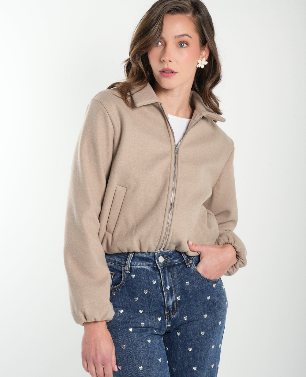 Chaqueta Corta Gamuza Marfil