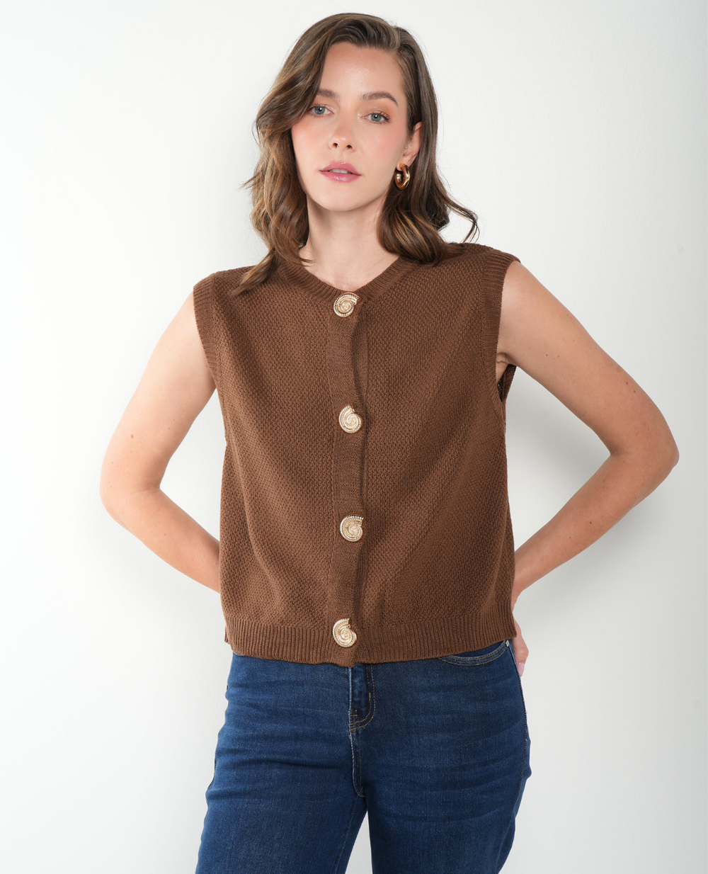 Chaleco Botones Caracol Cafe