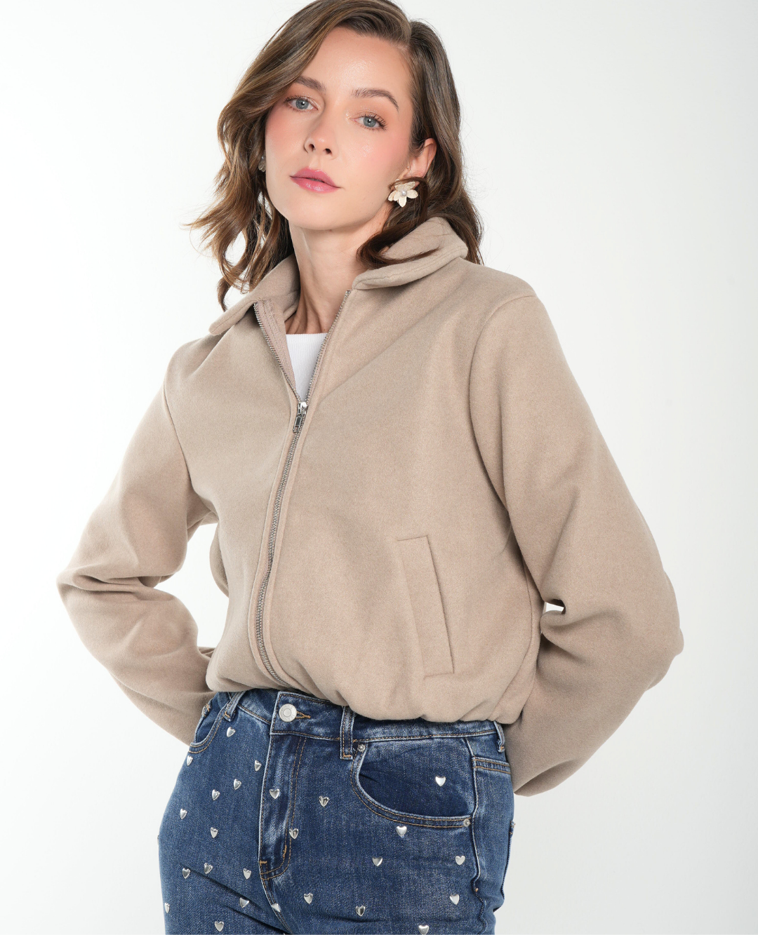 Chaqueta tipo bomber elaborada en paño de alta calidad, ideal para brindar abrigo ligero y comodidad. Su tono arena aporta un estilo sofisticado, neutro y atemporal, perfecto para combinar con diferentes colores y prendas.
