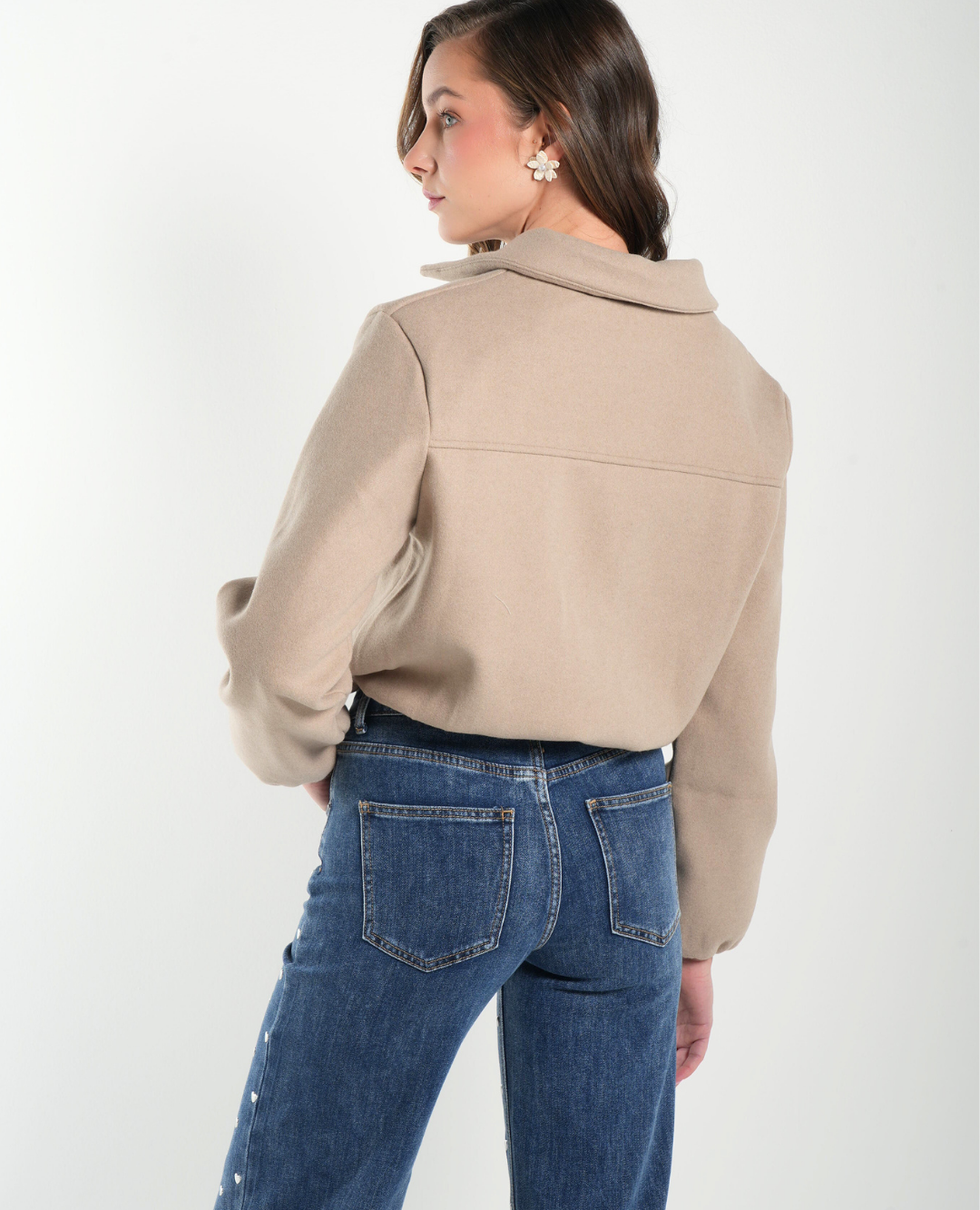 🤍 Chaqueta Bomber en Paño Color Arena