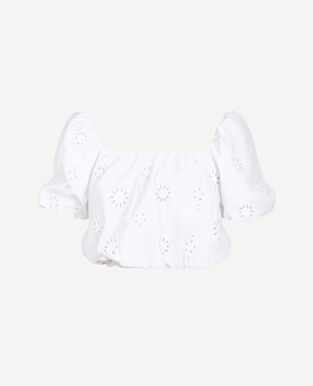 El top bombacho de ojalillo blanco es una pieza romántica y femenina que combina frescura, textura y estilo. Su diseño amplio y liviano lo convierte en un básico con carácter, perfecto para climas cálidos o looks de inspiración boho y campestre.